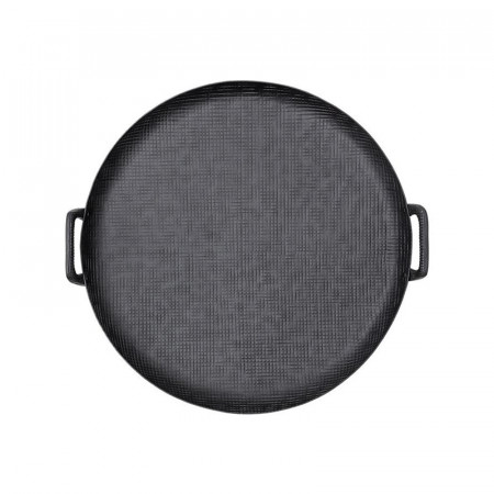 Plateau rond en aluminium noir avec 2 poignées de la marque Bloomingville. N'est pas adapté pour le lave-vaisselle, ni le four et ni le micro-ondes.