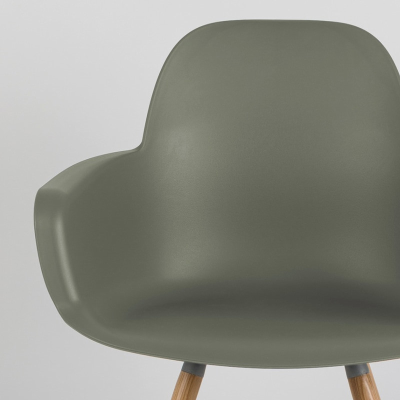 Une chaise scandinave avec accoudoirs vert kaki ALBERT dessinée par la marque Zuiver. Une jolie chaise pratique, élégante, stylée... de nombreux avantages pour une seule chaise ! Cette chaise scandinave en polypropylène vert kaki est idéale pour votre cuisine et votre salle à manger. Légère, résistante et facile d'entretien, elle vous facilitera la vie. Le piétement de la chaise est en bois de frêne massif. Cadre en aluminium. Ce modèle n'a pas besoin d'entretien, un coup d'éponge si nécessaire et le tour est joué !