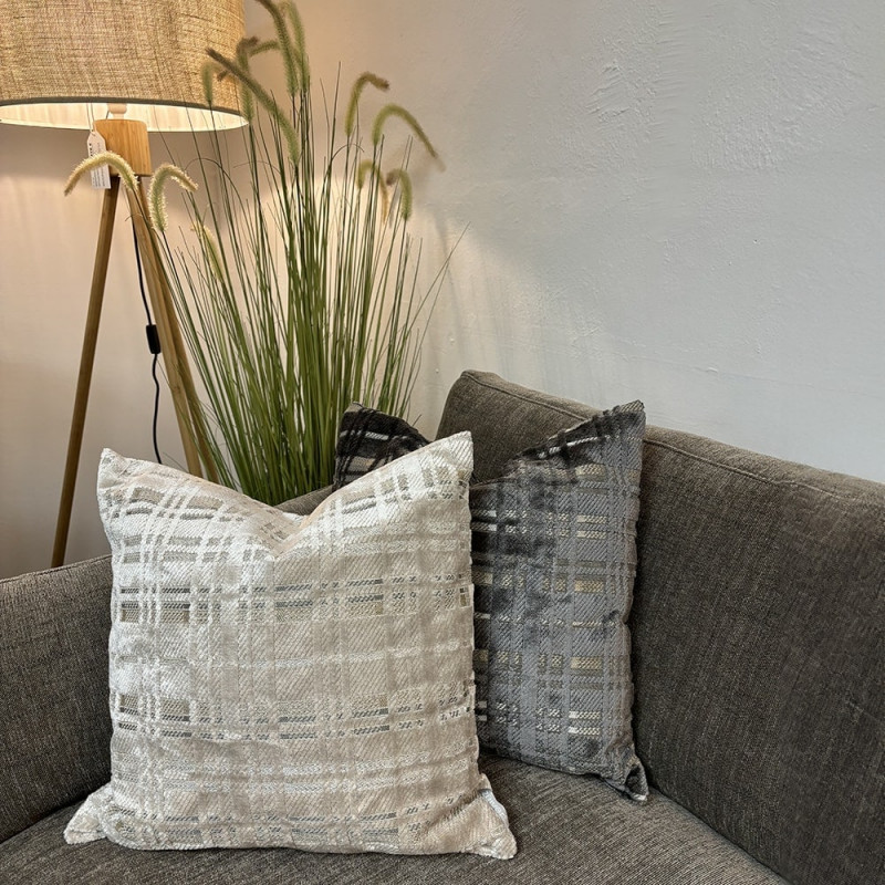 Coussin déco gris motif écossais 45x45 - Dandy