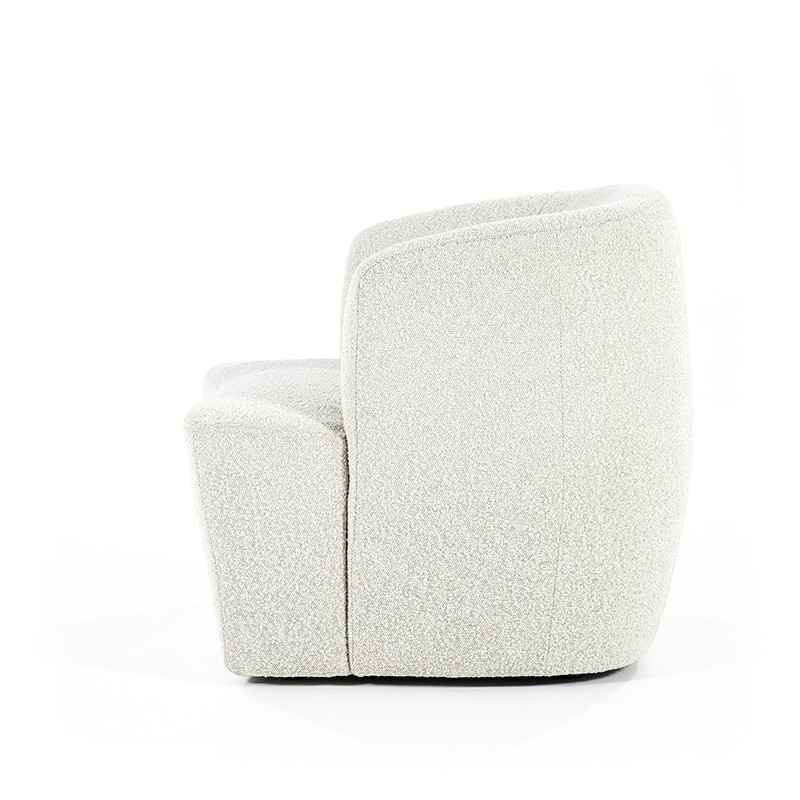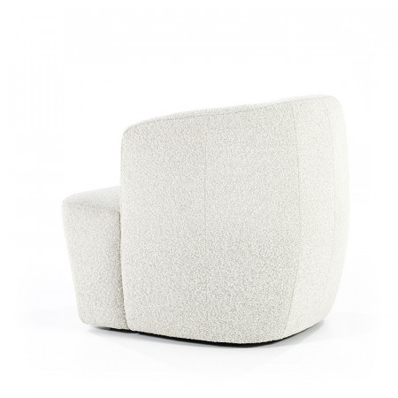 Tout en courbes, cette assise cosy vous accueille avec douceur, notamment grâce à son tissu bouclé d’une nuance immaculée. Composée d’une structure en métal, elle conserve son allure et son maintien durant de nombreuses années. Sous le tissu agréable au toucher, une mousse de garnissage haute densité assure un confort optimal. La ligne intemporelle de ce fauteuil cosy trouve sa place dans un salon, et même dans un coin détente ou une chambre. Nous vous recommandons seulement d’éviter de l’exposer en plein soleil.