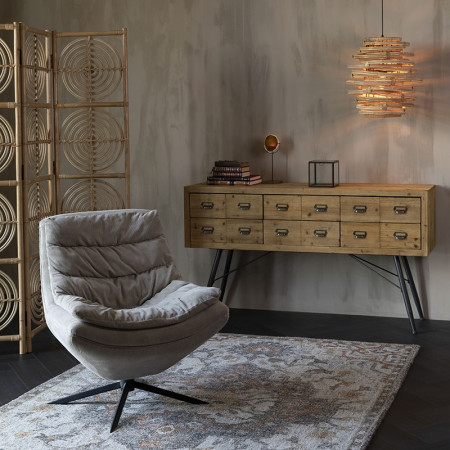 Ce fauteuil cosy style vintage habille une coque en bois d’eucalyptus d’une mousse haute densité et ignifugée et d’un tissu velours beige. Vous pouvez vous y installer confortablement et l’utiliser pendant plusieurs heures, un simple petit tapotage suffit à lui redonner sa forme d’origine. Le piétement design en métal noir donne l’impression de faire courir des risques à vos sols fragiles. Pourtant, des petits capuchons presque invisibles limitent les risques de rayures ou de marques.
