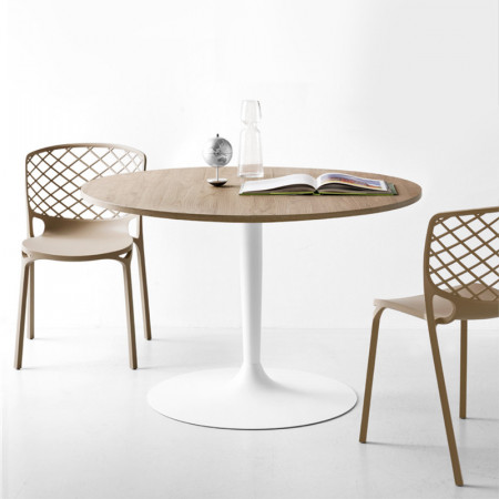 À mi-chemin entre les styles design et nature, la table ronde en bois et pied central blanc PLANET sera parfaite pour accueillir votre famille ou vos proches autour d’un bon repas. Signée par la marque italienne Connubia, cette table à manger 6 personnes charme par ses lignes arrondies et le subtil mélange entre le bois et le métal. Le piétement tulipe rappelle celui des anciennes tables de restauration d’inspiration mange-debout.