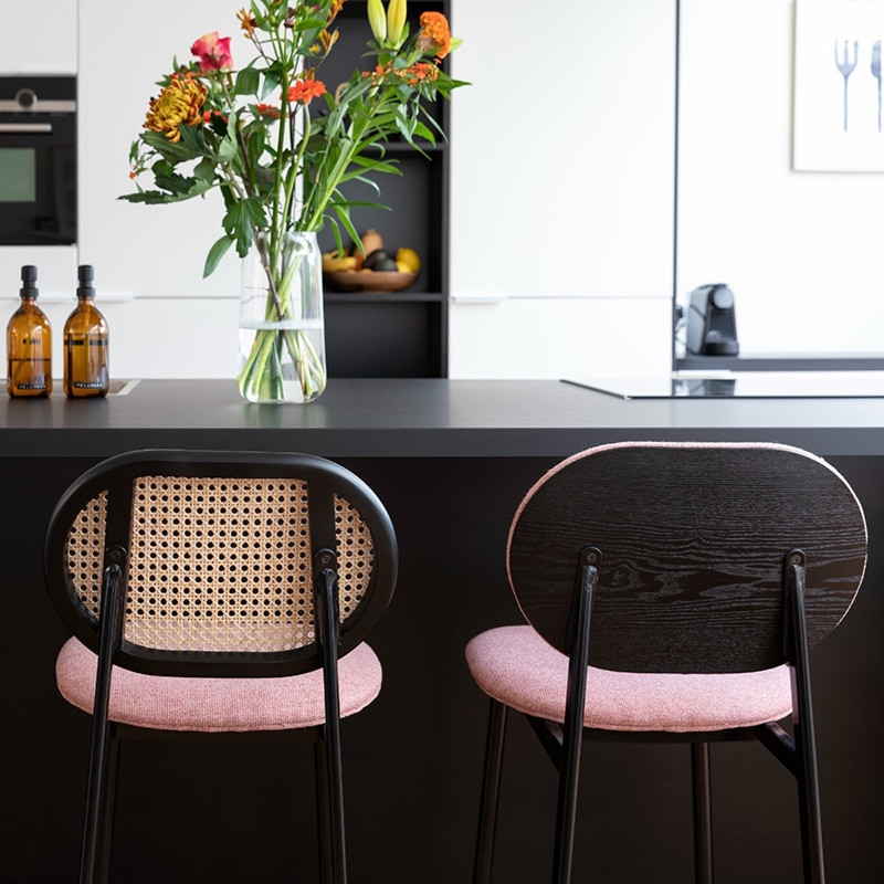 Livré en kit et facile à monter, le tabouret de bar en cannage et tissu rose SPIKE confirme les préférences de la marque Zuiver pour les lignes douces et épurées. Vous aimez le cannage ? Dans ce cas, laissez-vous tenter par les différents meubles de la collection, et notamment par la table d’appoint coordonnée ou le fauteuil bas.